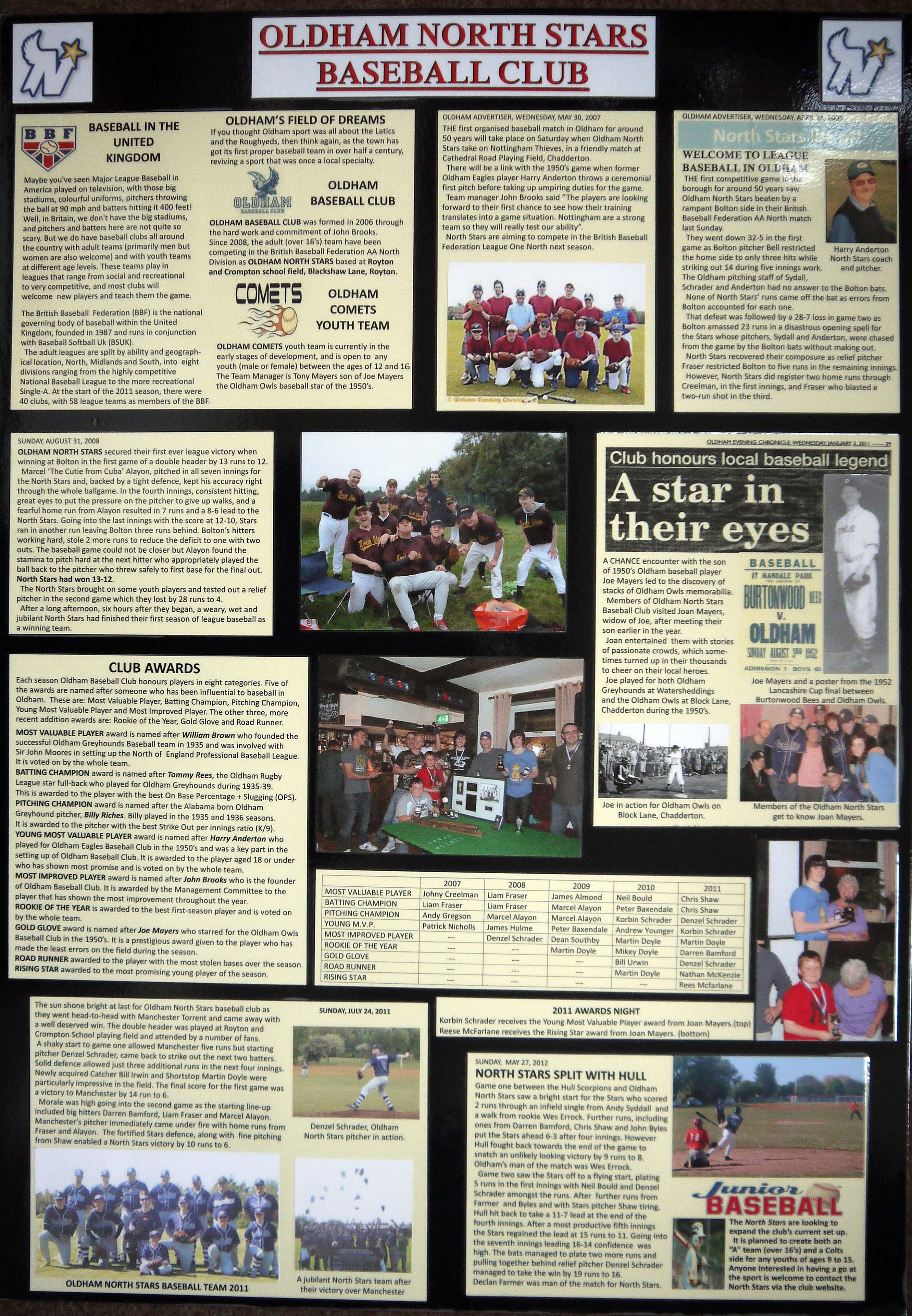 His diplay boards presented at Oldham Local Studies in 2012 on the town's baseball history can be accessed below.